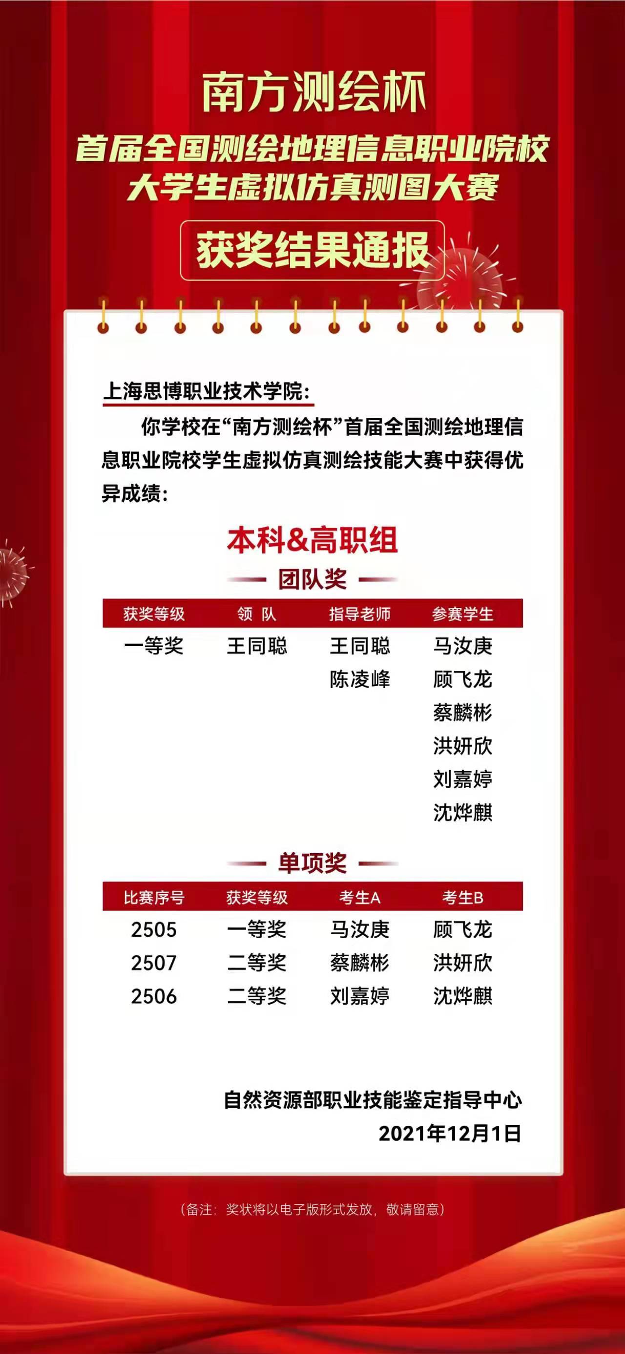 我院学生在“南方测绘杯”首届全国测绘地理信息职业院校大学生虚拟仿真测图大赛取得优异成绩