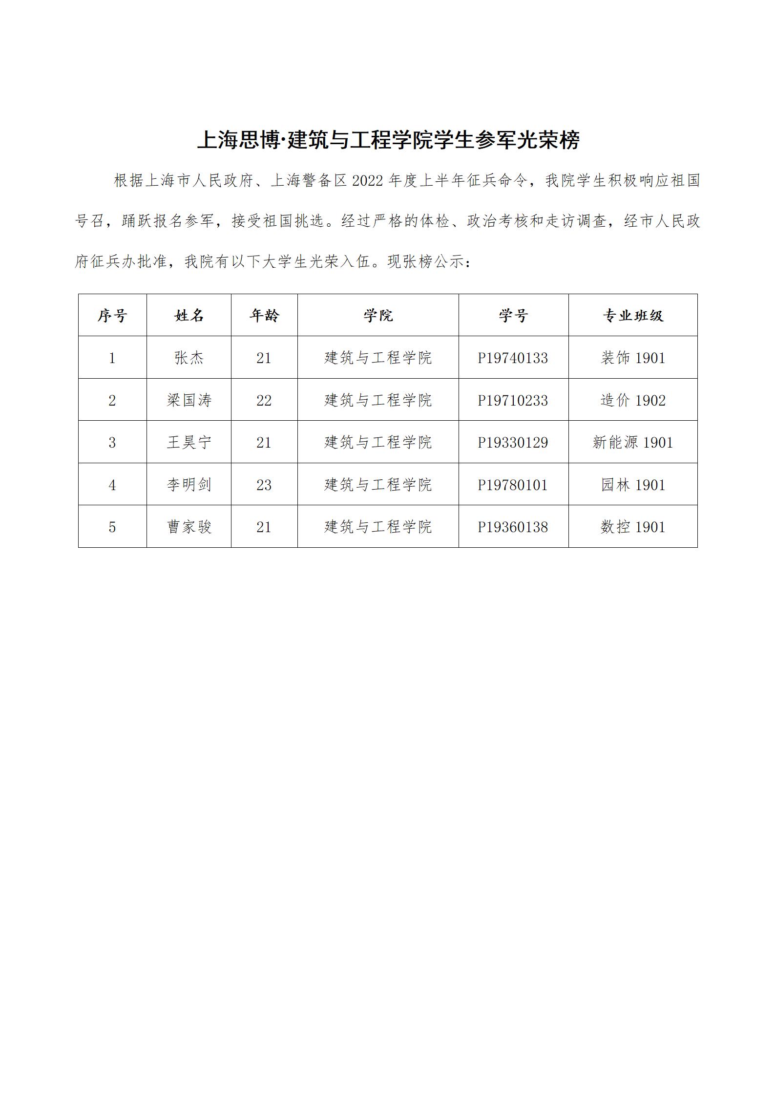 建筑与工程学院学生参军光荣榜